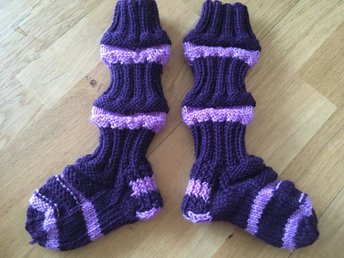NYA Stickade sockar yllesockor lila randiga hög skaft, stl 25-26, SE MÅTT!