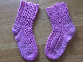 Stickade sockar yllesockor rosa hålstickning, stl 34-35, SE MÅTT!