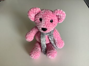 Handgjord virkad Rosa Nallebjörn med Halsduk
