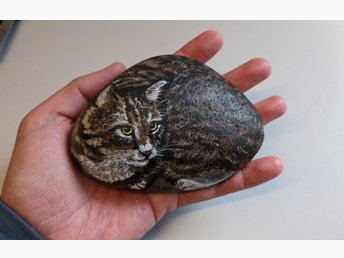 Konst, katt, målad sten, stenkonst, hantverk, present
