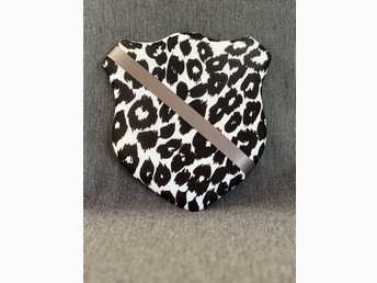 Märkestavla för simmärken/smycken leopard vit/stålgrå satin