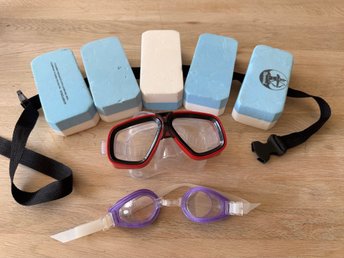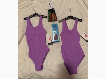 Två Aquarapid Baddräkter Simglasögon Marlin Dyk leksak lila baddräkt för barn