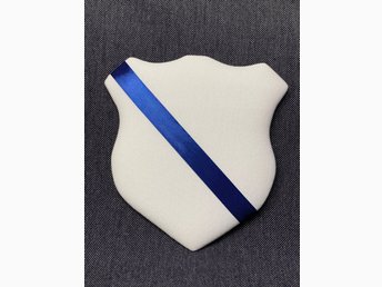 Märkestavla för simmärken/smycken vit/mörkblå satin