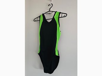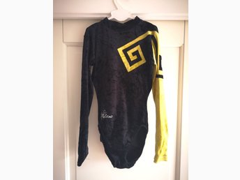 Svart, blå, vit gymnastikdräkt, storlek 12