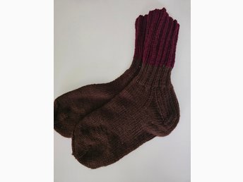 Brunvinröd raggsockor strl 44 stickade julklappstips varma