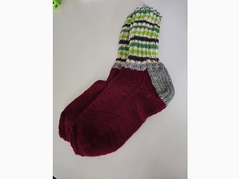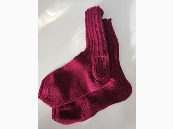 Vinröda raggsockor strl 38 stickade julklappstips varma