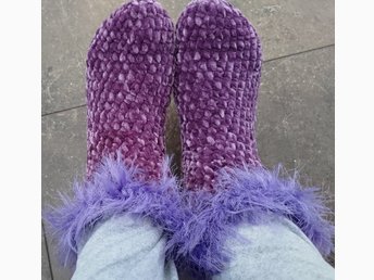 Handgjorda Virkade tofflor / tossor / myssockar i sammetsgarn st ca 39/40