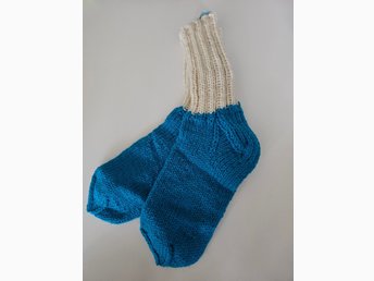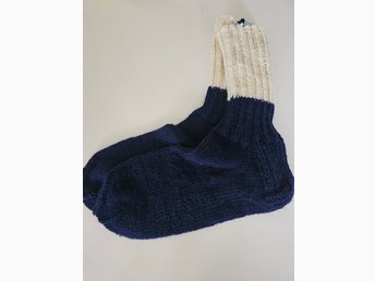 Mörkblåvit raggsockor strl 46-48 stickade julklappstips varma