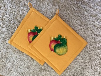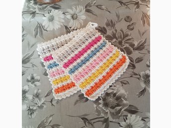 2 st. grytlappar, eget hantverk. mått 23 x 23 cm.