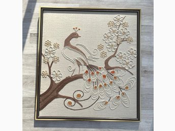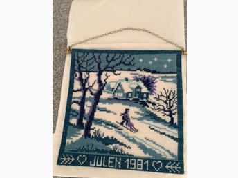 Jättefin Handbroderad Väggbonad Ned upphängningskedja JUlen 1981