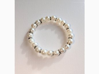 Egentillverkat armband med vita pärlor och strass