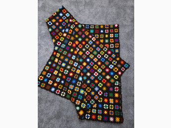Fin virkad filt av mormorsrutor från 70-talet