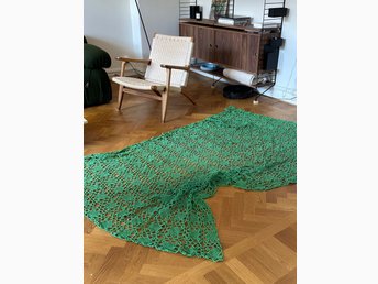 Handvirkad filt/överkast i vackert spetsmönster