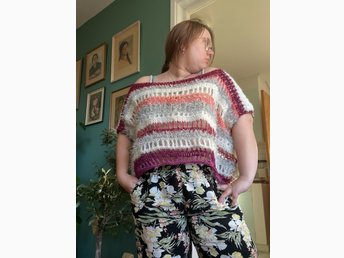 Rosa, grå, vit virkad topp off the shoulder