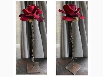 Dekorativ ros med taggtråd som stjälk. 32cm hög.