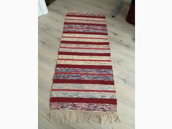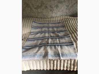 Handvävd trasmatta i blått och vitt