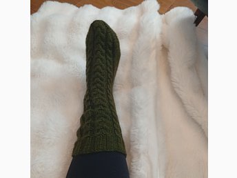 Handstickade strumpor med ett flätmönster på ovansidan storlek 38-39