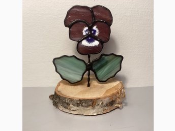 färgad glaskonst Tiffany-teknik lila viol på en björkskiva +/- H 12 B10 cm