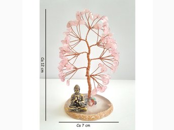 LIVETS TRÄD Dekoration/Inredning ROSENKVARTS pärlor Buddha figur Symbol