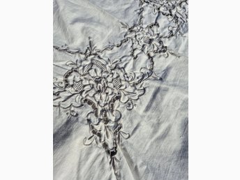 Vintage handbroderad duk, linneväv cremvit