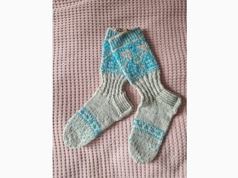 Ullraggsockor stl 40-42 Grå/Turkos