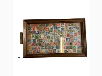 Bricka Frimärken Vintage Träram Flera Färger Retro Inredning Samling