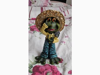 Dekorativ groda med hatt och spade