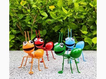 4 Dekorativa Trädgårdsmyror i Metall