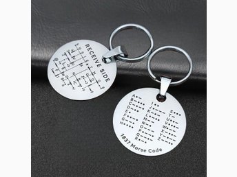 1x Double-Sided Stainless Steel Morse Code Keychain diameter 3 cm New
