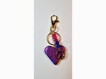 Bag charm väskhänge/nyckelring med hjärta och fredstecken berlock
