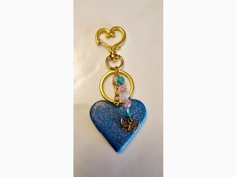 Bag charm väskhänge/nyckelring med hjärta och fjäril berlock
