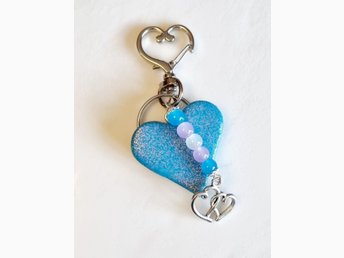 Bag charm väskhänge/nyckelring med hjärta och silver hjärtan berlock