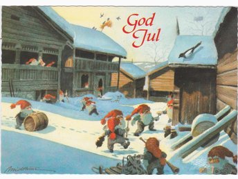 Kjell E. Midthun-Mange små nisser utenfor huset i skogen -Ubrukt-Aune forlag