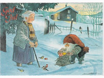 Kjell E. Midthun-Nissen kommer med gaver til en eldre kvinne-Ubrukt-Aune forlag