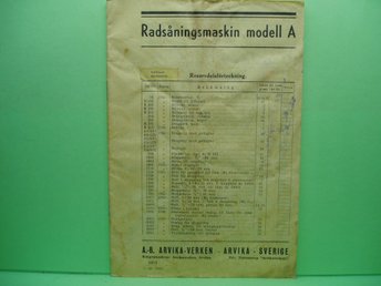 Ab.Arvika-Verken Reservdelsförteckning Radsåningsmaskin modell A.......1946