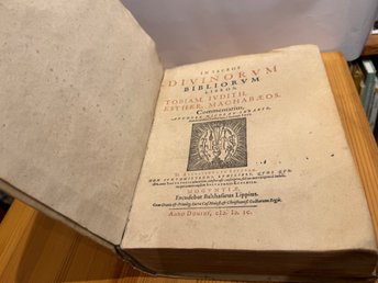 Antik julklappsbok. In Sacros Divinorum.... 1555-1609, ExLibris Lundsbergs skola