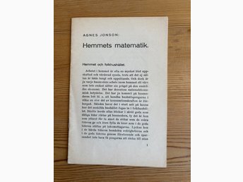 Hemmets matematik av Agnes Jonson, 1936, häfte, sällsynt, husmodern