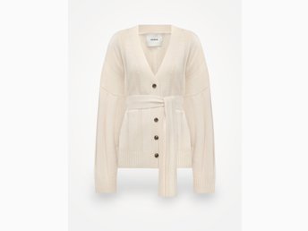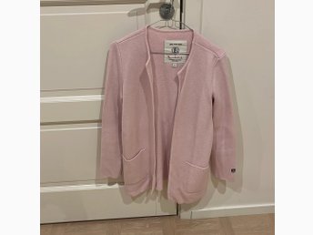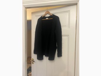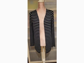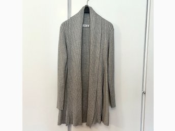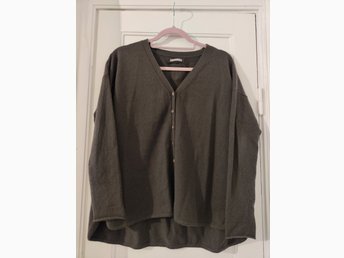 Fransa långkofta strl M ljusgrå lång cardigan a-linje öppen sjalkrage, viskos mm