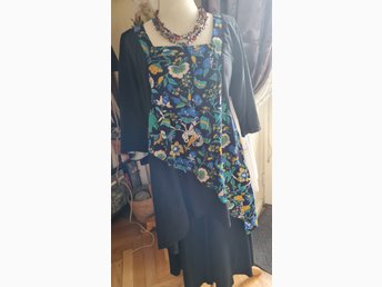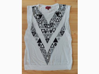 Vit/svart ärmlöst linne / tunika. PAON Stl XL.