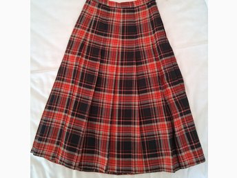 Kjol vadlång vintage i rött, svart rutigt, storlek 36