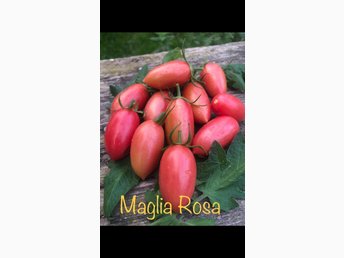 Maglia Rosa. Blir mängder med avlånga rosaaktiga tomater.