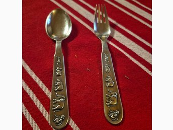 Fem bestick för barn kniv gaffel sked rostfritt