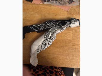 Handstickad svart och vit mössa, ull o. polyamid, stl ca 55-56 cm i huvudmått