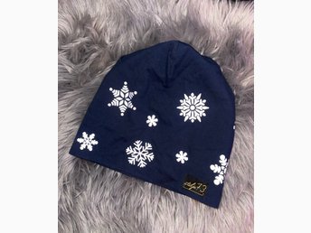 Marinblå mössa med Snöflingor med Reflexer strl Vuxen