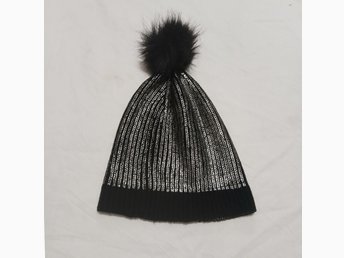 MÖSSA SVART cap stickad tofs toppluva hatt keps TITTA** SNABB LVERANS**