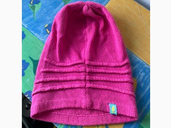 Varm hemstickad rosa mössa i reflexgarn - perfekt för att synas i mörker!