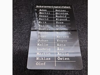 Bokstaveringsalfabet Försvaret/Radio/Tele - Skylt i aluminium
