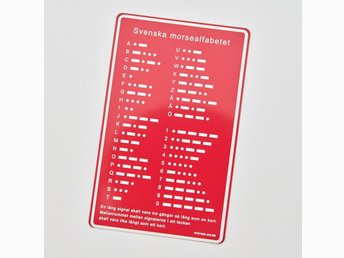 Svenska morsealfabetet - rött kort i aluminium - Storlek: 86 mm x 54 mm