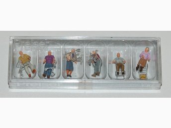 Preiser miniatyrmodeller i H0 nr 4022 av 6 stycken järnvägspersonal