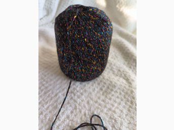 Glittrande garn med 70 % bamboo, 30% syntetfiber/rayon, svart/flerfärgad.
